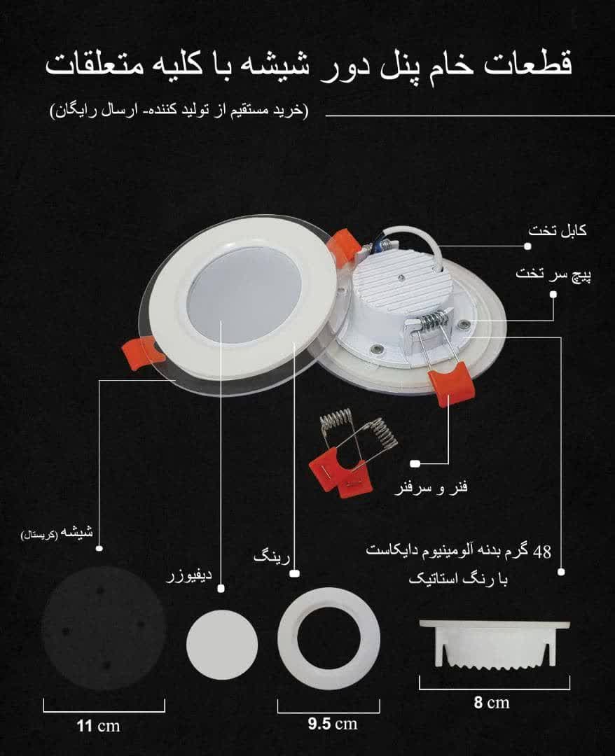 بدنه این نوع پنل از جنس الومینیوم دایکست میباشد که مهمترین بخش یک چراغ ال ای دی محسوب میشود این نوع پنل دردورنگ سفید وافتاب تولید میشه برش این محصول جهت نصب 7سانت ورویه کار 11سانت میباشد